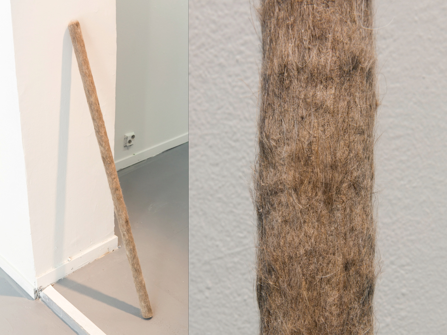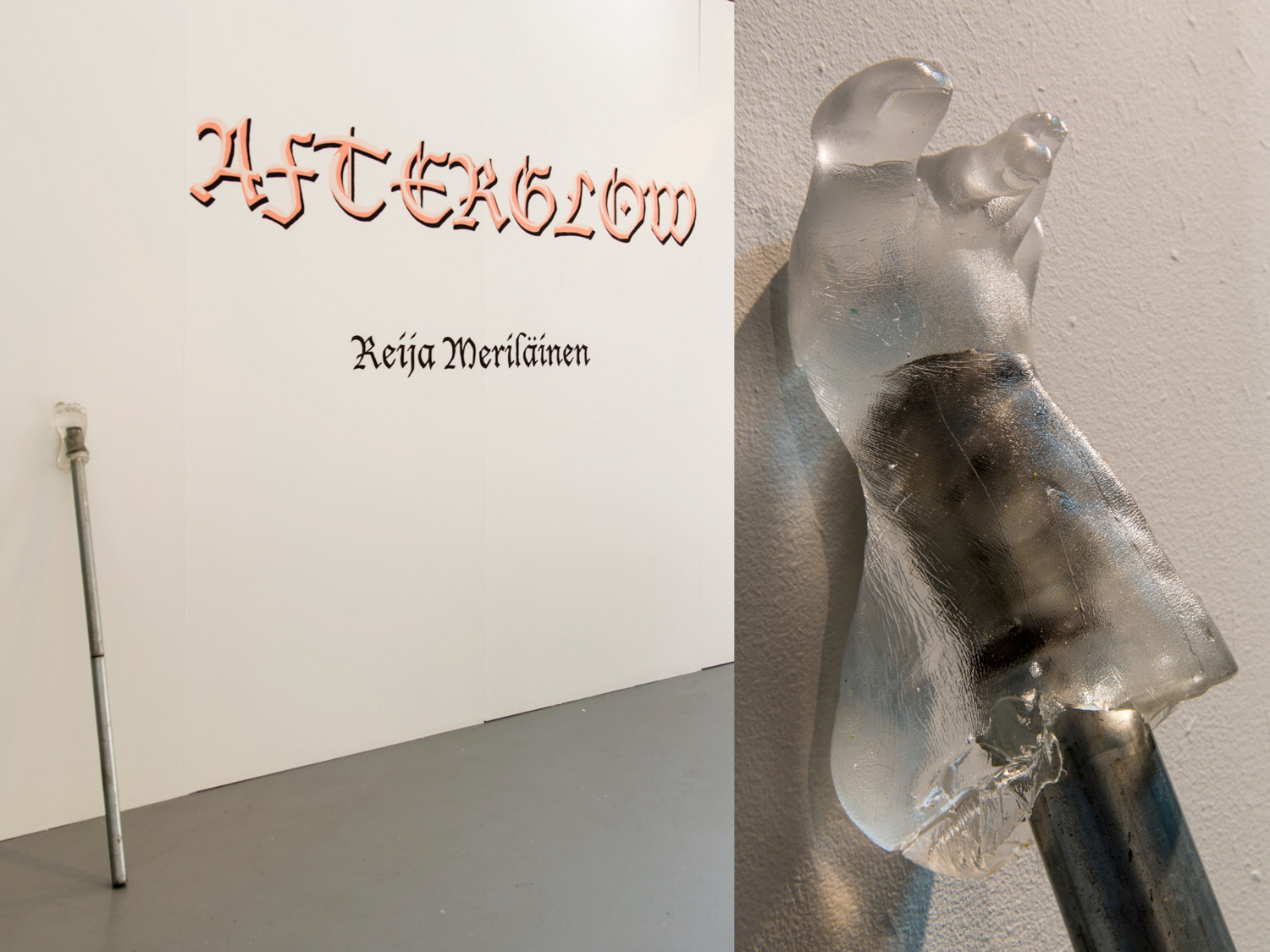 Solo exhibition, gallery Fafa, Helsinki 18.7.–3.8.2014 Video and sculpture installation including 4 videos, soundscape, and sculptures made from various materials such as ballistics gel, steel, latex, leather, plaster, cat hair and found objects. The central piece called Mimi Lost Mind is an interactive installation where the viewer has to hold on to a soft, fleshy ballistics gel sculpture of a leg in order to watch the video. If the viewer lets go of the leg, the video stops and goes back to the beginning.